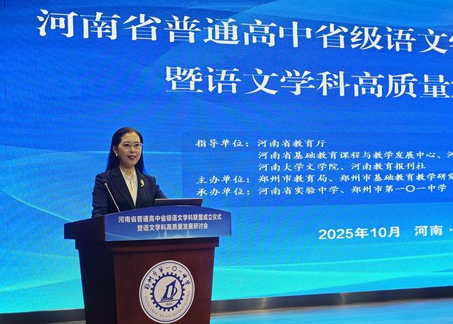 联盟成立仪式由郑州市第一〇一中学校长谭纪萍主持,各方教育同仁齐聚一堂,共同见证这一推动河南高中语文教育高质量发展的重要时刻。
