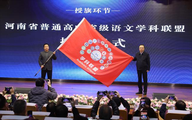 随后,河南省基础课程与教学发展中心党委书记、主任、河南省基础教育质量检测中心主任赵阳将联盟旗帜授予联盟理事长代表、郑州市第一〇一中学党委书记李国喜。