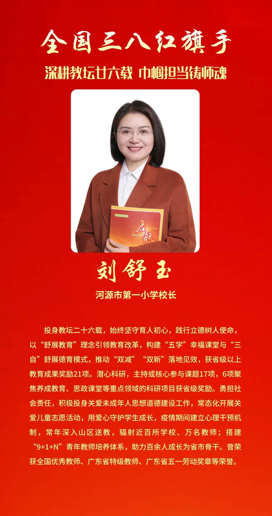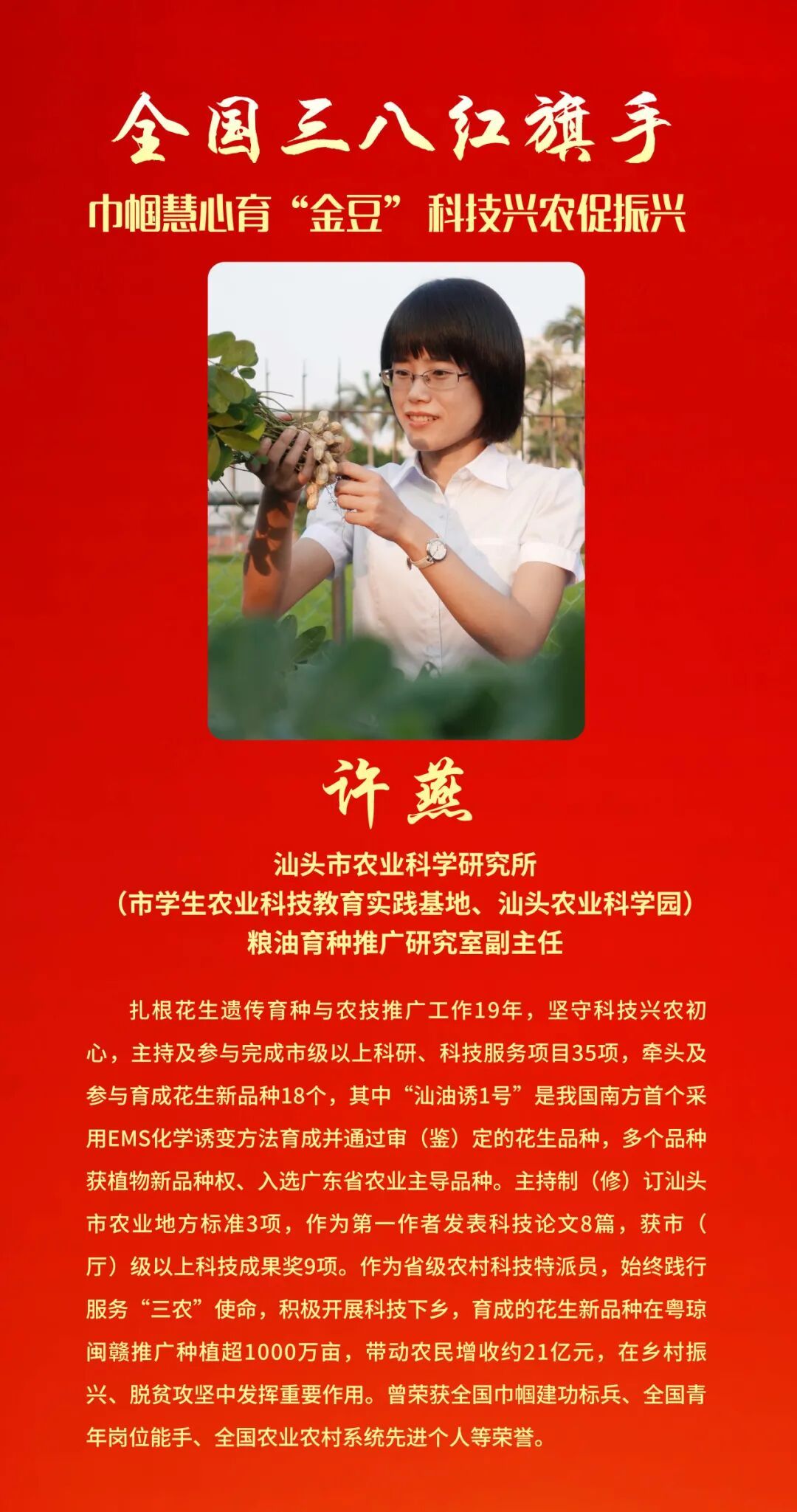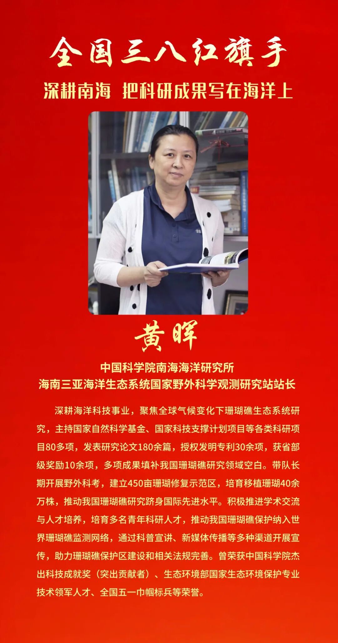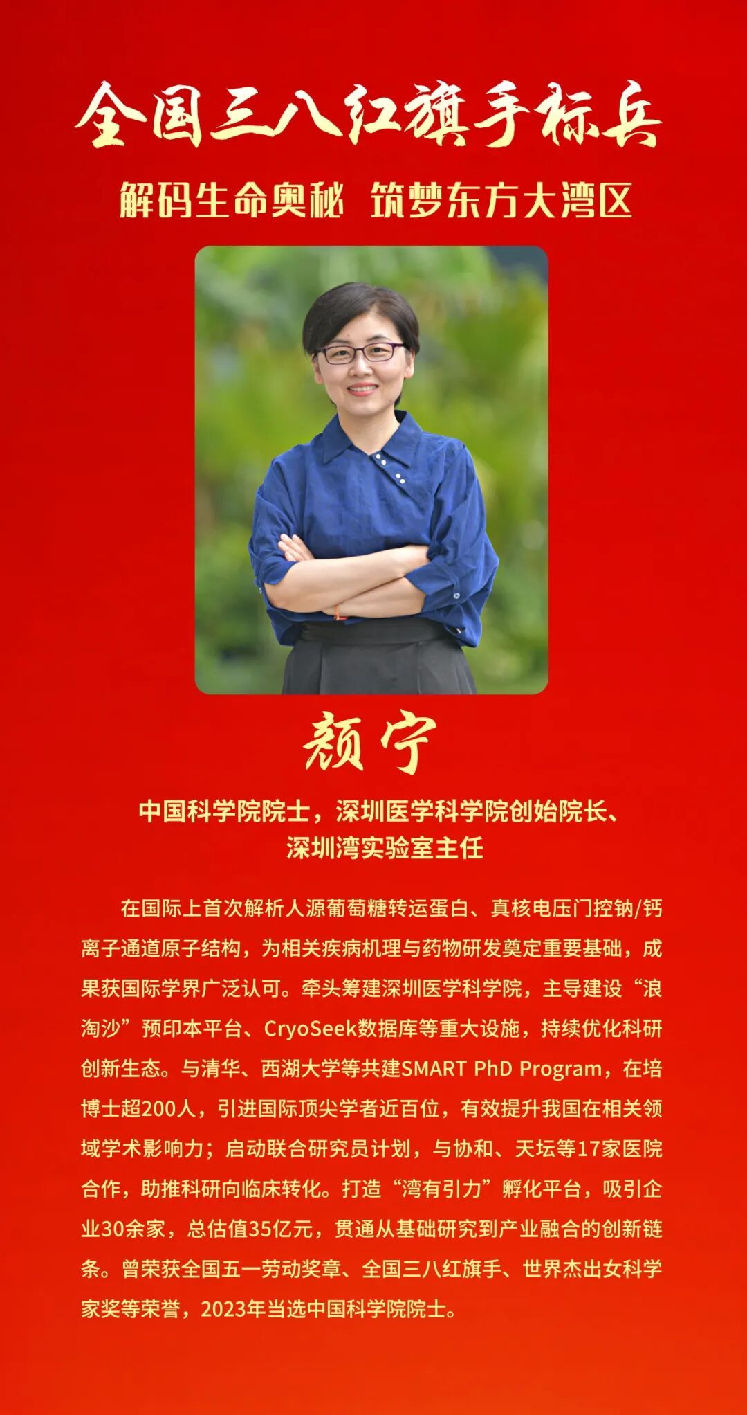 其中,我省颜宁获评全国三八红旗手标兵称号,孙力等21人获评全国三八红旗手称号。