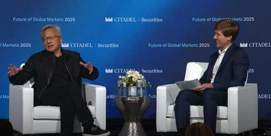 10 月 6 日,在纽约 Casa Cipriani 举行的 Citadel Securities Future of Global Markets 2025 会议上,英伟达创始人兼首席执行官黄仁勋 (Jensen Huang) 与红杉资本合伙人 Konstantine Buhler 就人工智能和下一个增长前沿进行了交谈。